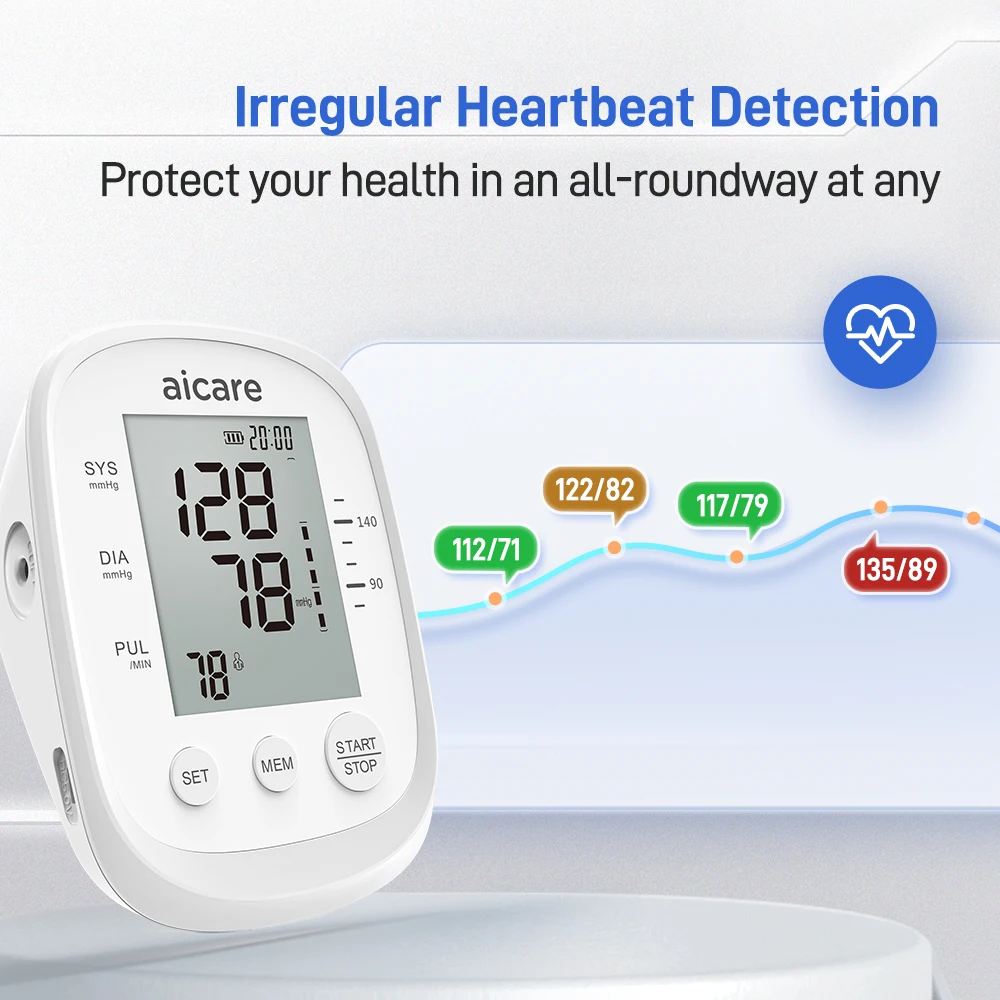 AICARE Blood Pressure Monitor Upper Arm Automatic Tonometer Digital Blood Pressure Meter BP Medical Sphygmomanometer Pulse