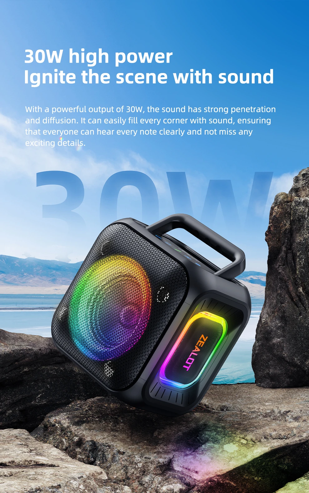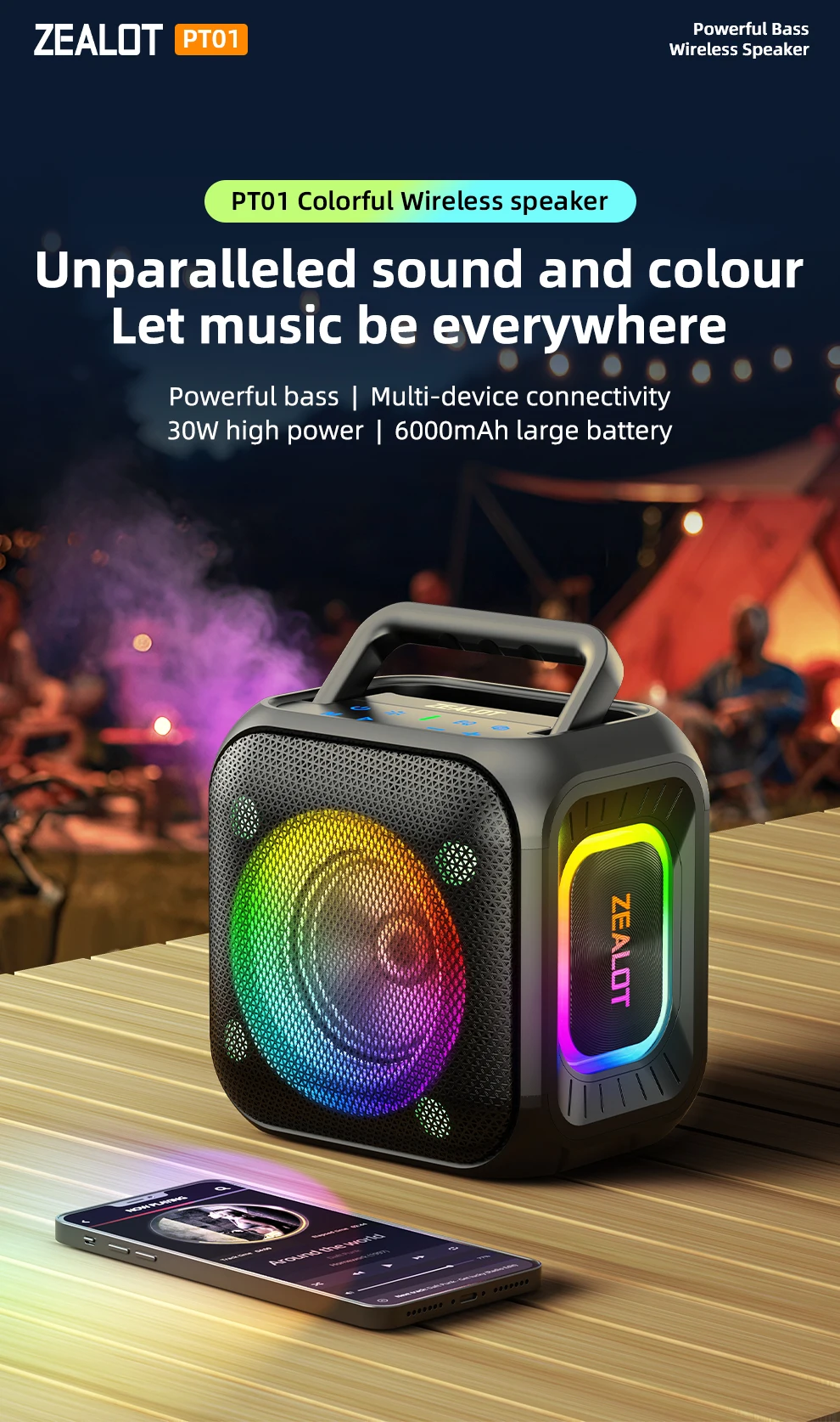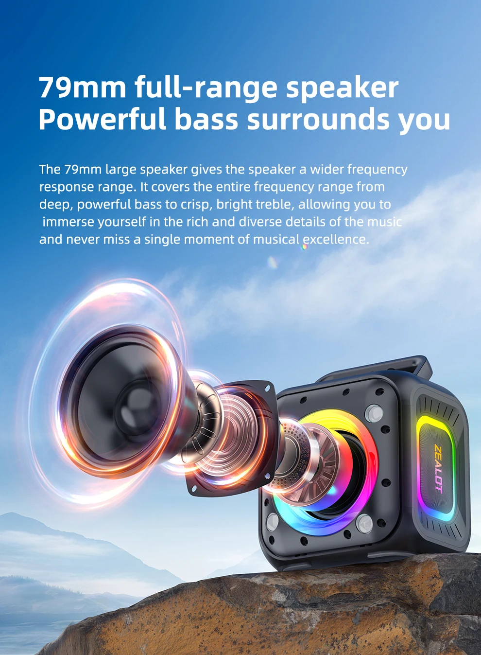 Zealot_PT01 Portable Bluetooth Speaker,IPX6 Waterproof 360° Wireless Speaker TWS Stereo Pairing 10hrs Playtime For Camping Hikin